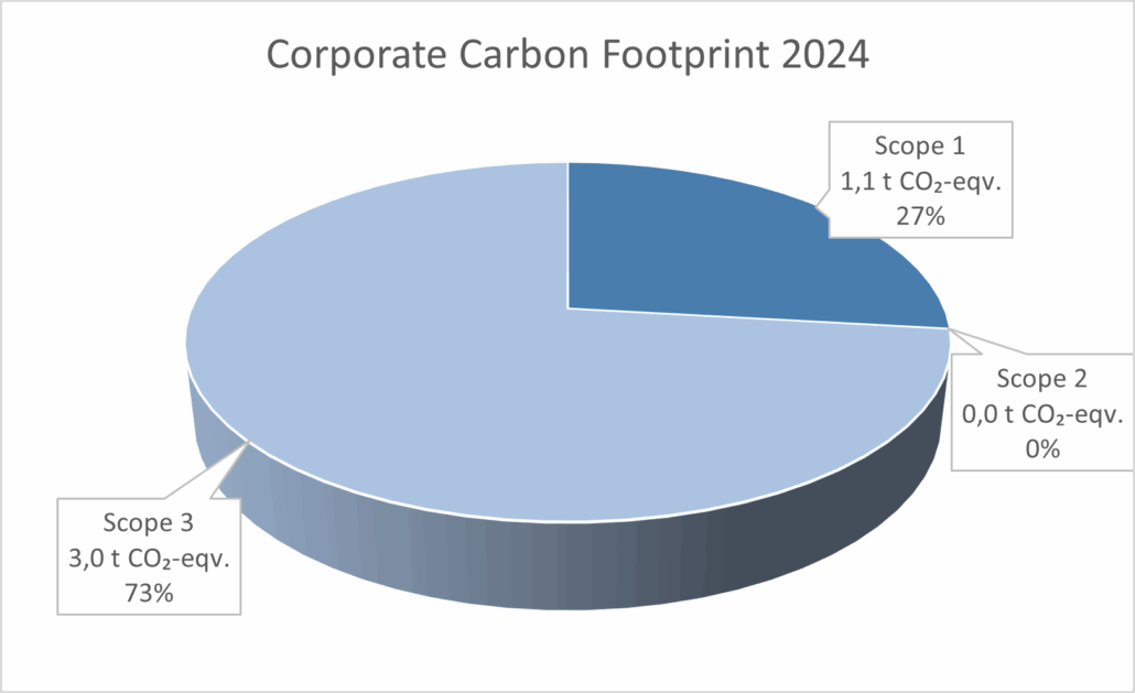 We have set ourselves the goal of continuously reviewing, reducing, and offsetting our climate-related activities in the long term. To this end, we have been determining our corporate carbon footprint in accordance with ISO 14064 across all scopes since the 2020 fiscal year.
